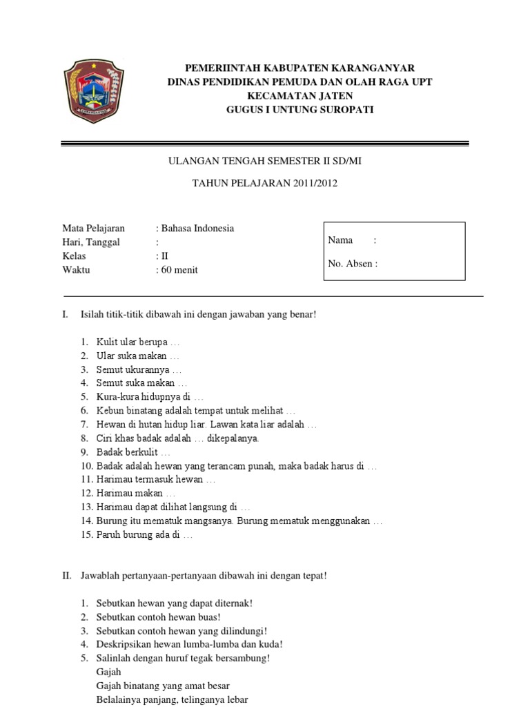 Pemeriintah Kabupaten Karanganyar Dinas Pendidikan Pemuda Dan Olah Raga Upt Kecamatan Jaten Gugus I Untung Suropati