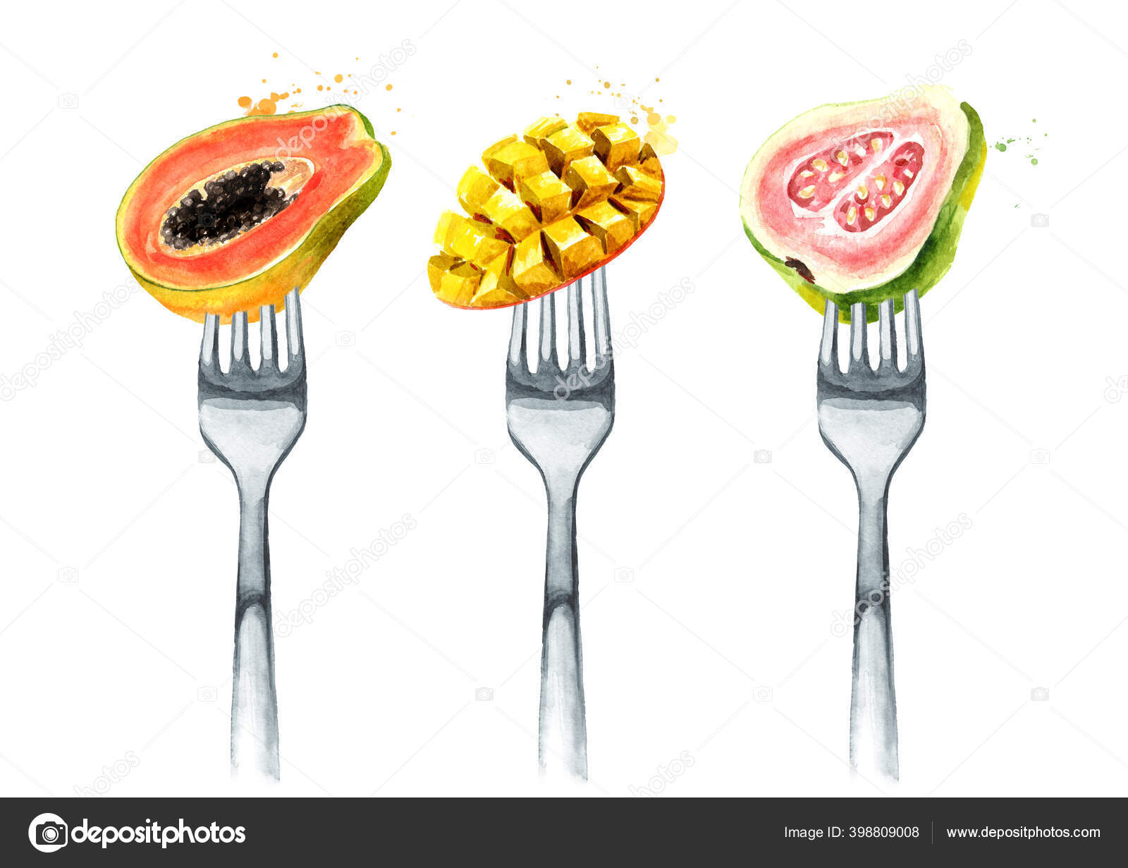 Tropical Pepaya Jambu Mangga Pada Garpu Konsep Diet Dan Makanan — Stok Foto © Daria.Ustiugova #398809008