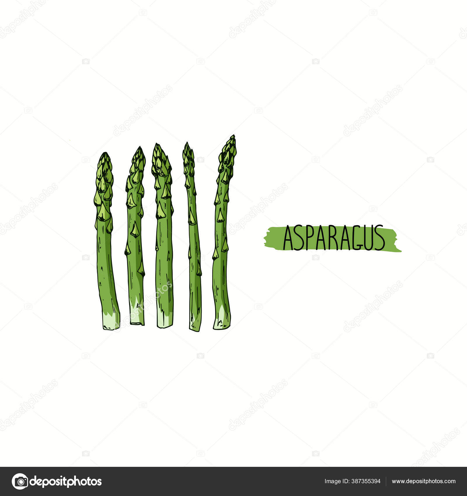 Set Sketsa Gaya Gambar Tangan Hijau Asparagus Ilustrasi Warna — Stok Vektor © Oliga712 #387355394