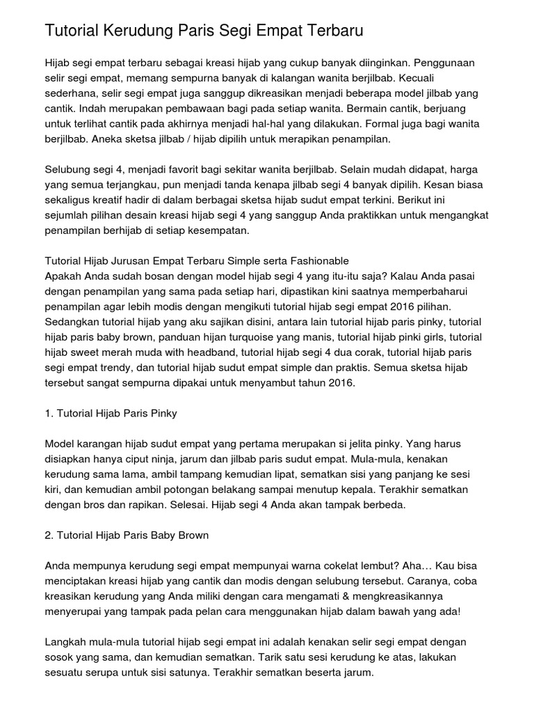Tutorial Kerudung Paris Segi Empat Terbaru