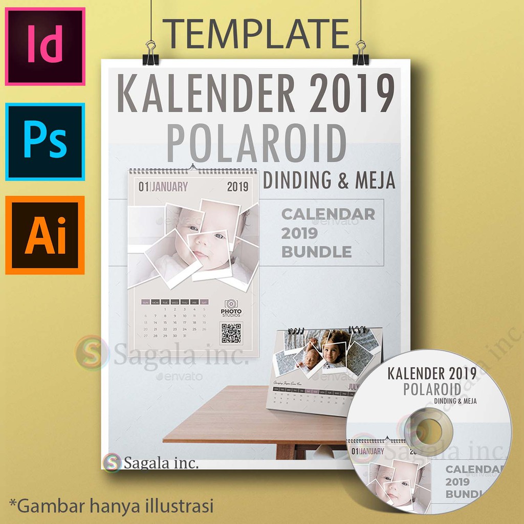 template kalender 2019 polaroid photoshop indesign illustrator | Shopee Indonesia