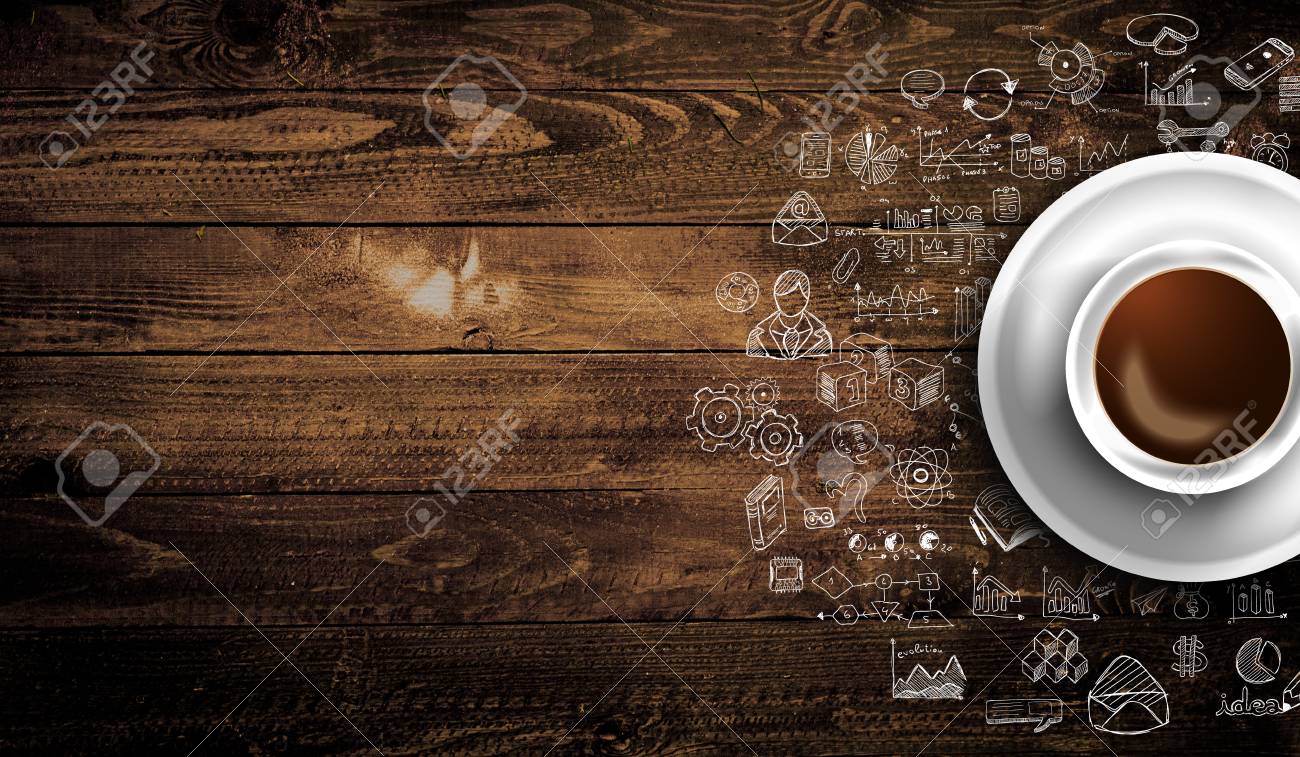 Infograph Background Template With A Fresh Coffee On Real Wooden, Stock Photo | Crushpixel