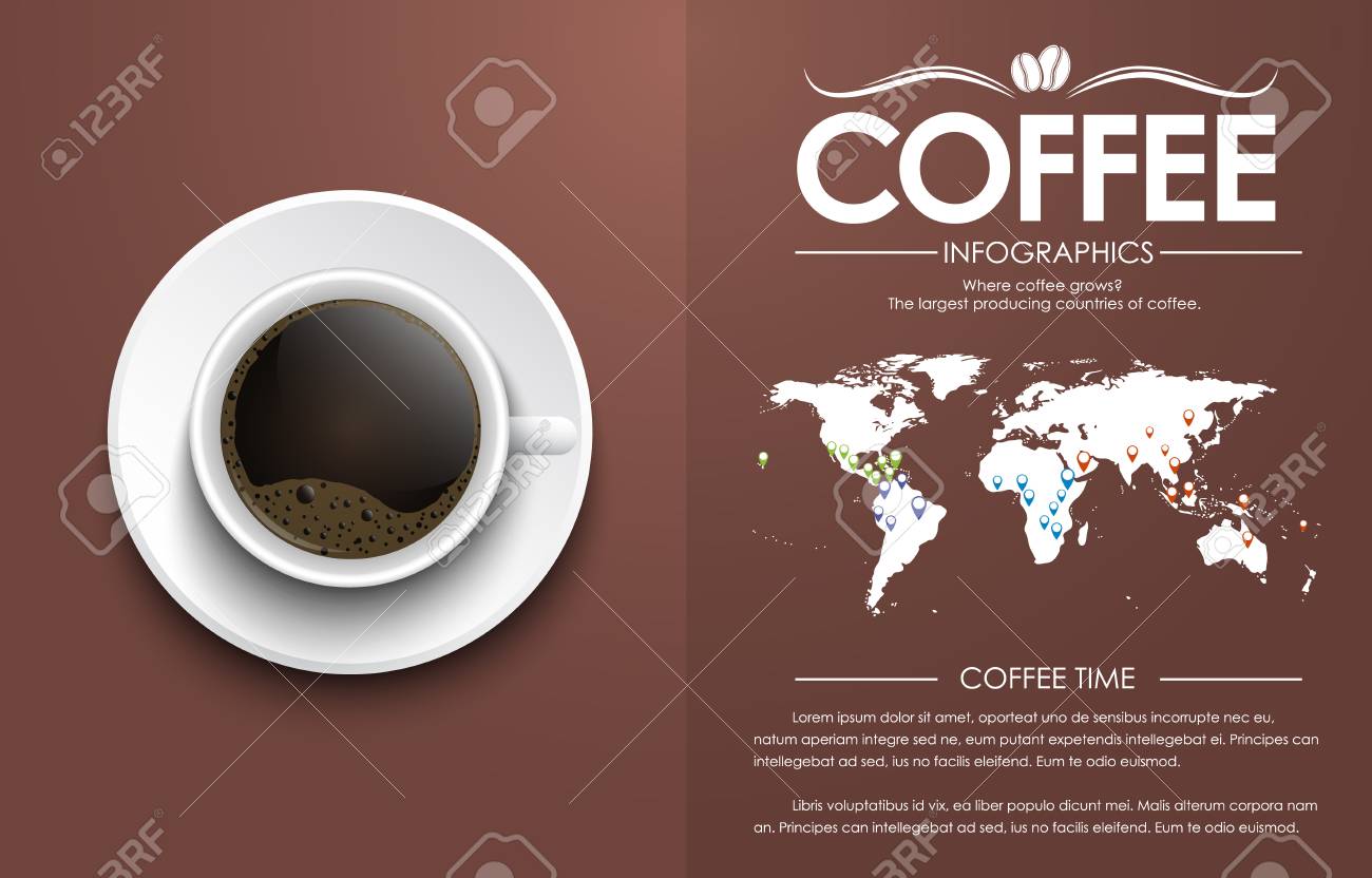 Infograph Background Template With A Fresh Coffee On Real Wooden.. Stock Photo, Picture And Royalty Free Image. Image 82198525.