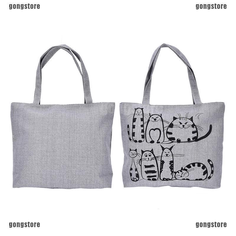 Cute Cat Floral Printed Canvas Bags Tote Bag Women Female Casual | Shopee Singapore