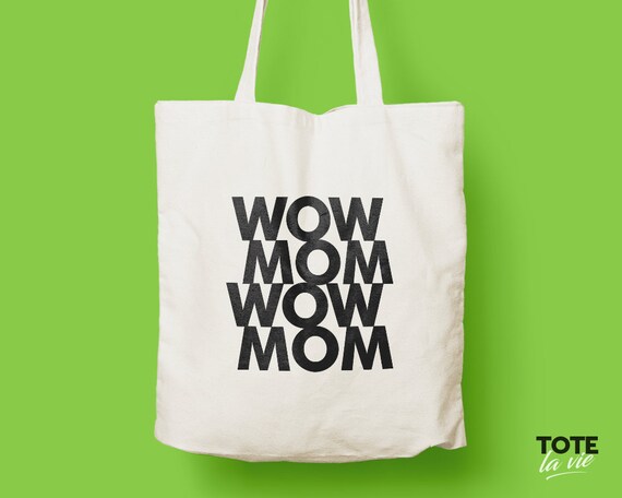 Wow Mom Typography Tote Bag / Graphic Tote Bag / Canvas Tote | Etsy