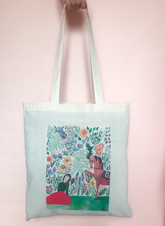 Washable natural cotton shopper bag with watercolour design | Etsy