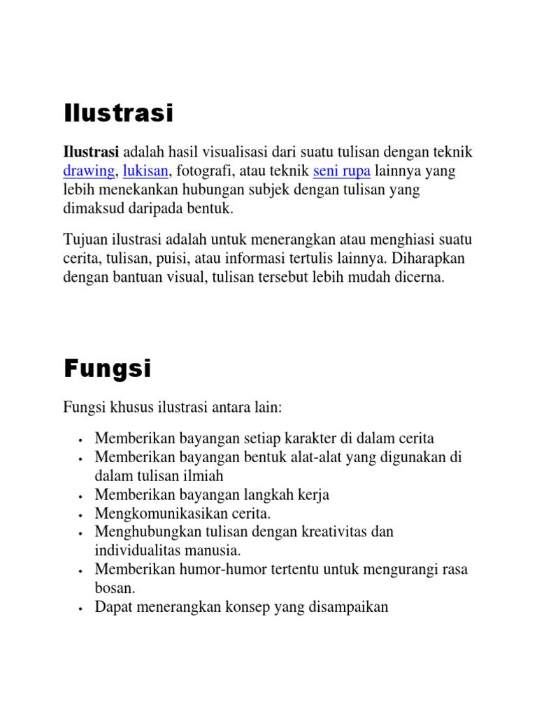 Ilustrasi: Ilustrasi adalah hasil visualisasi dari suatu tulisan dengan teknik