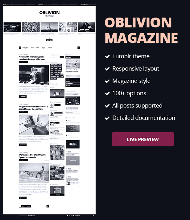 Oblivion Magazine - Premium Responsive Tumblr Theme