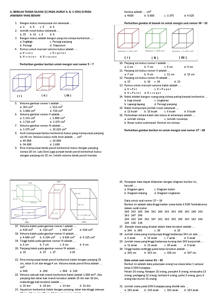 Soal Matematika Kelas 5 SD Bab 5 Kubus dan Balok dan Kunci Jawaban - Bimbel Brilian