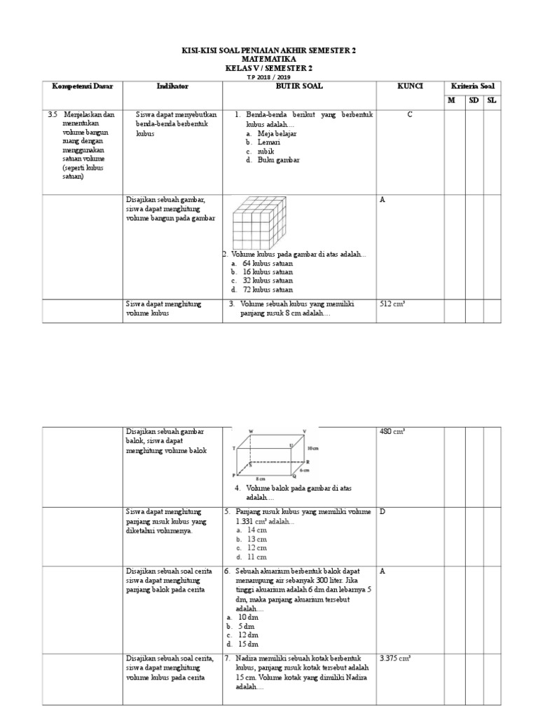 Soal Matematika Kelas 5 Sd Bab 5 Kubus Dan Balok - ProProfs Quiz