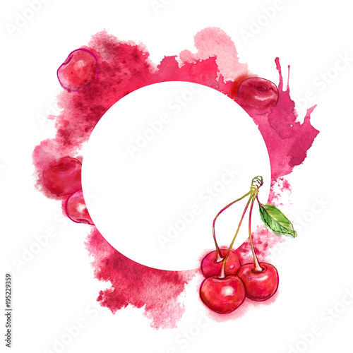 Cherry and juicy splash on white background. Hand-painted watercolor template - Buy this stock illustration and explore similar illustrations at Adobe Stock | Adobe Stock
