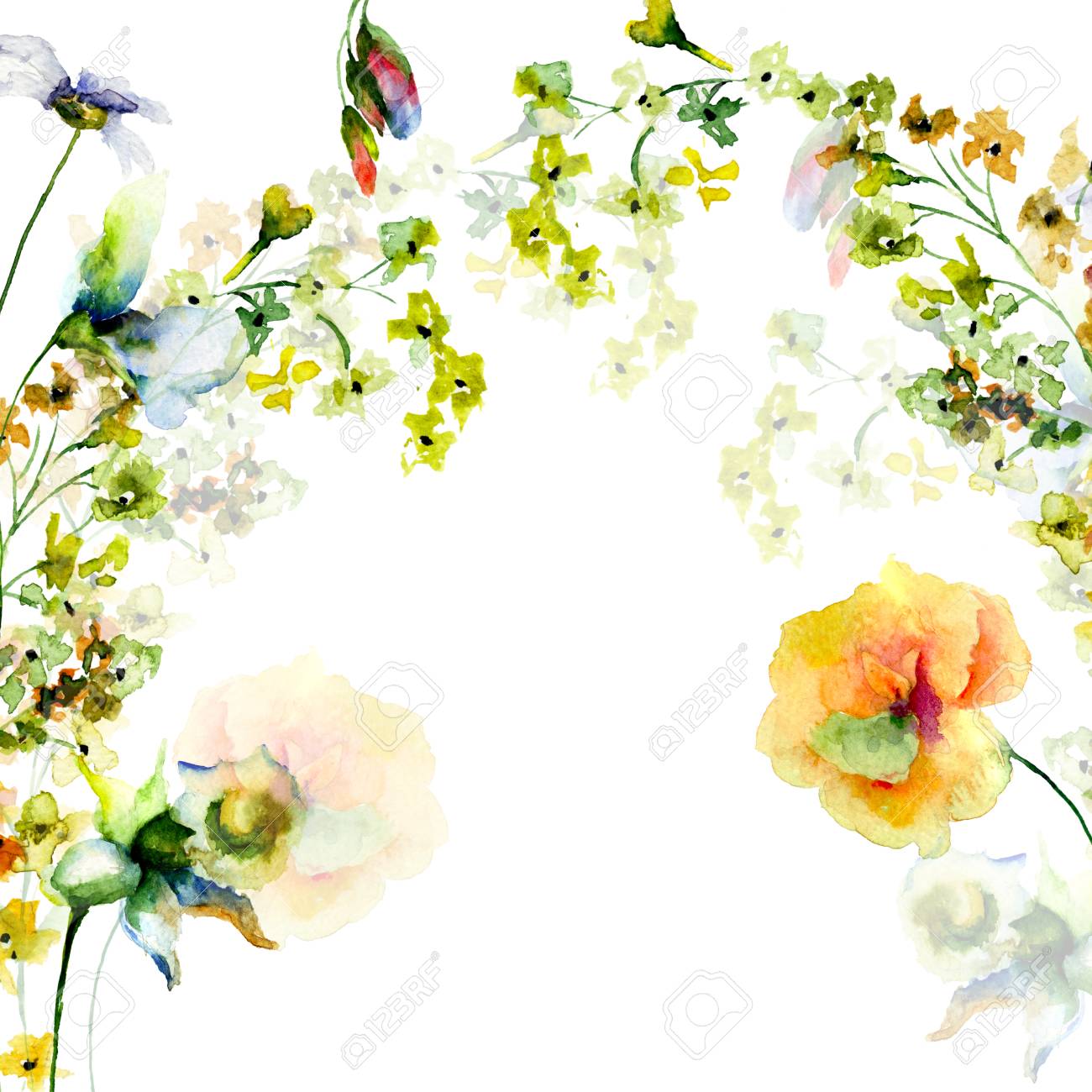 Floral Template For Card With Flowers, Watercolor Illustration Stock Photo, Picture And Royalty Free Image. Image 79968144.