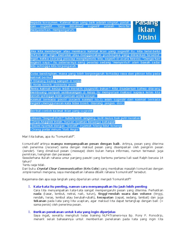 Contoh Kalimat Yang Cermat Tetapi Tidak Komunikatif - Temukan Contoh