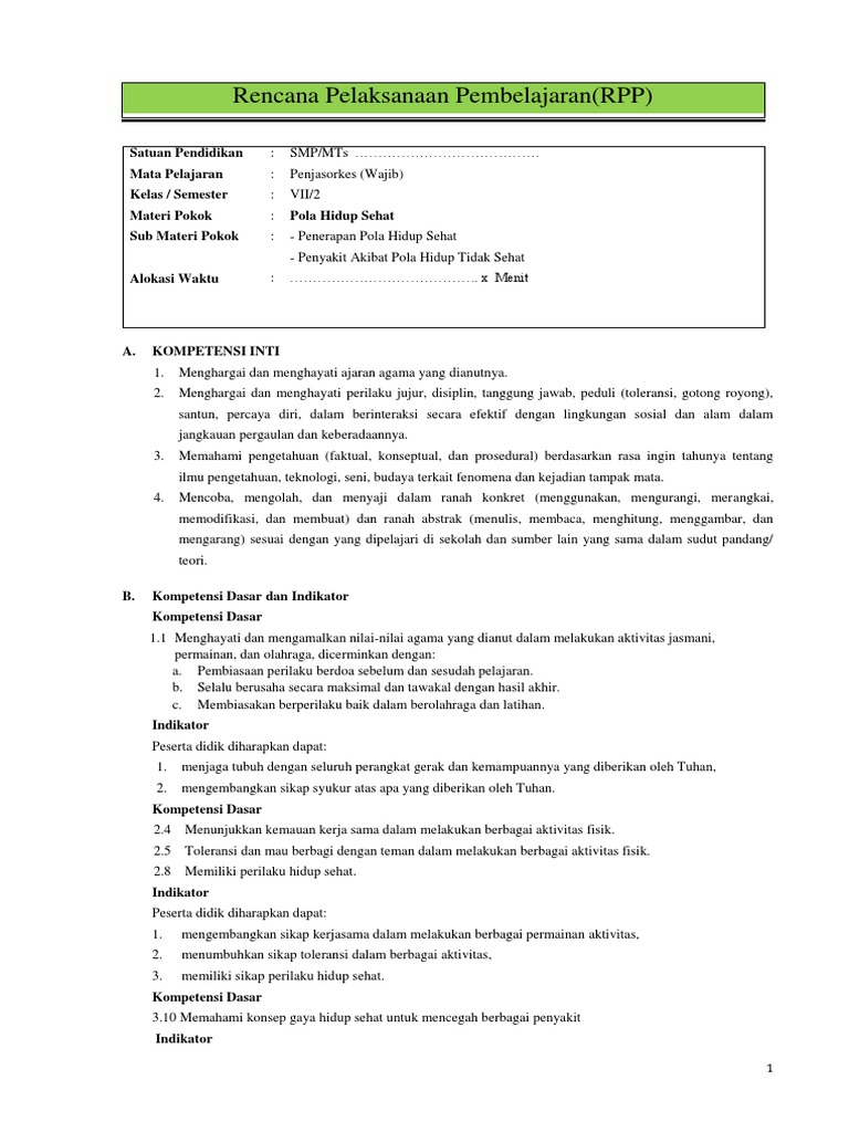 RPP BAB 10 PENJASORKES - Pola Hidup Sehat.docx