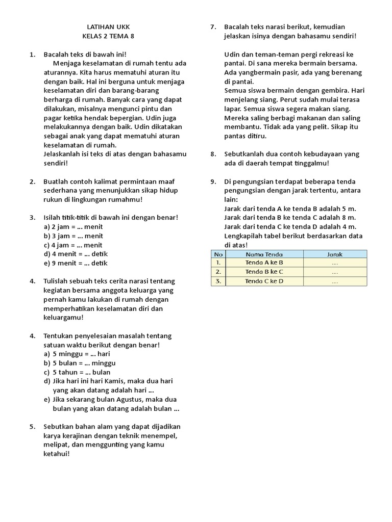 Soal untuk Mid dan UKK K13 Kelas 2 Tema 8