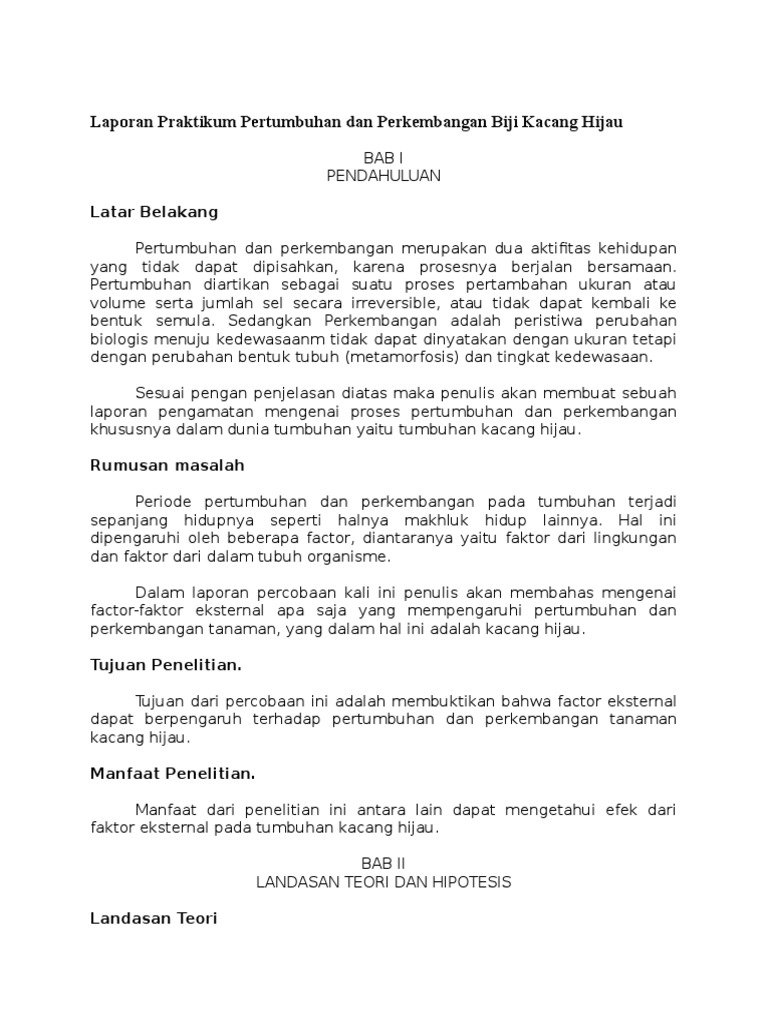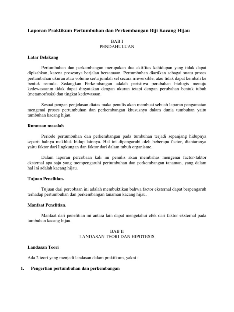Contoh Laporan Penelitian Pertumbuhan Kacang Hijau - Kumpulan Contoh Laporan