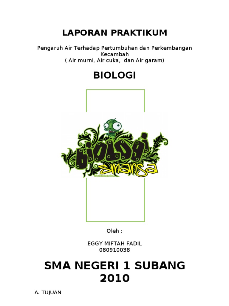 DOC) Laporan Praktikum Biologi " Pengaruh Cahaya Matahari dan Air terhadap Pertumbuhan dan Kelas : XII IPA 1 | Ferri Bawangi - Academia.edu