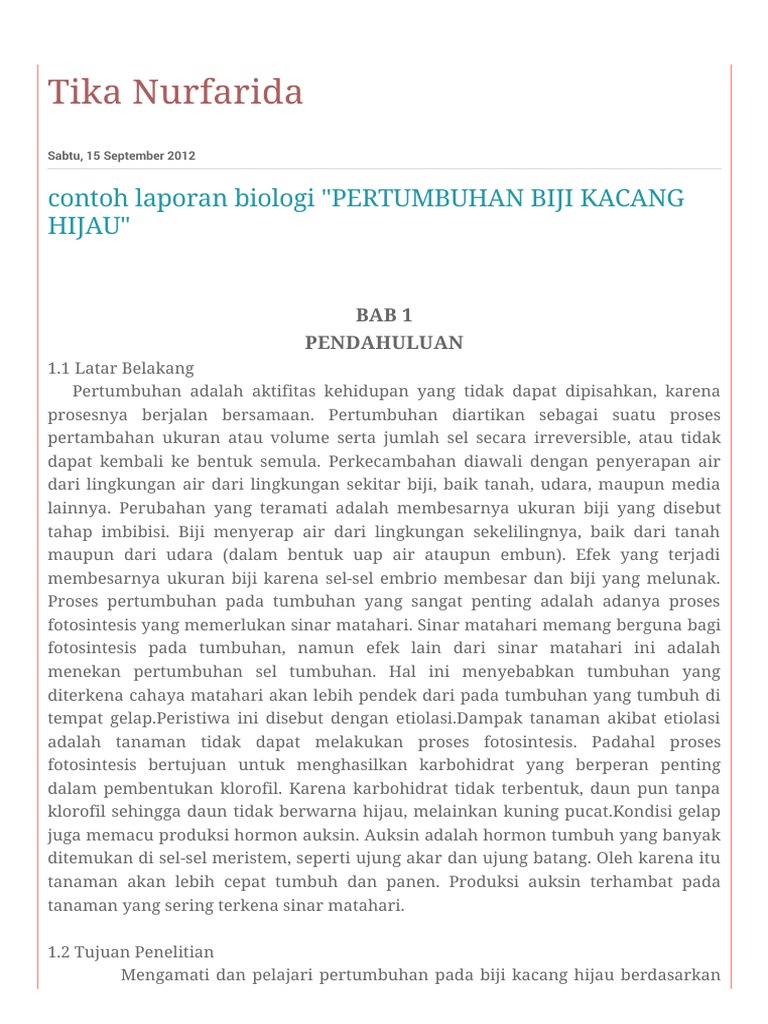 DOC) Contoh 1. Karya Ilmiah Biologi: Tumbuhan Kacang Hijau | Hizki Madriddista - Academia.edu
