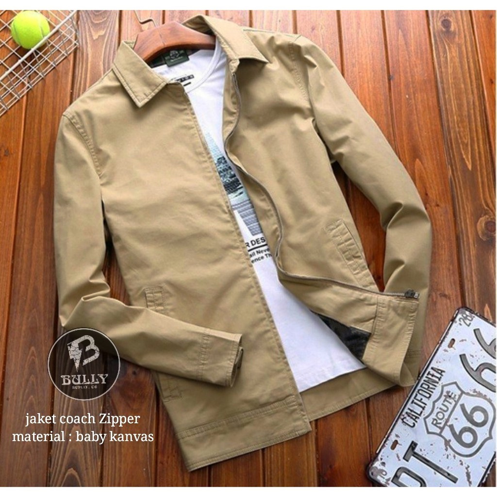 Jaket coach zipper bahan baby canvas warna crem ,hitam | Shopee Indonesia