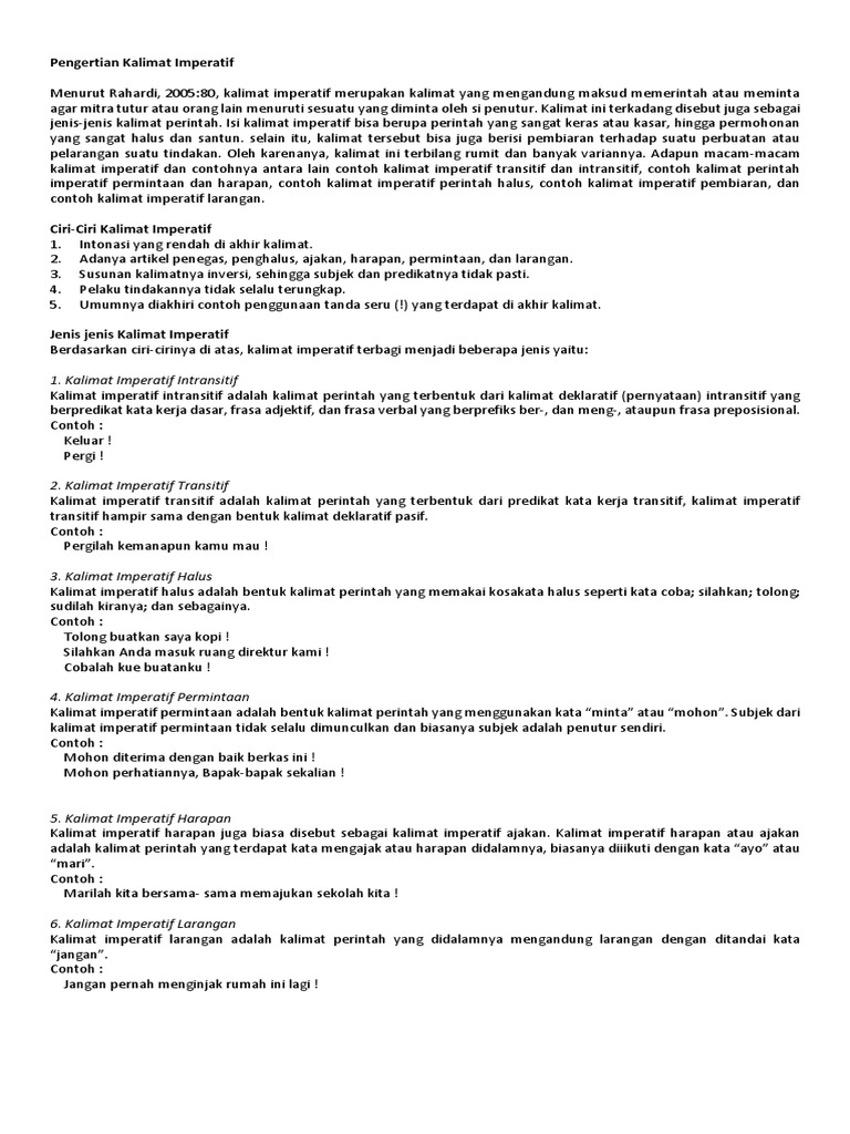 Contoh Kalimat Imperatif - Pengertian dan Contoh B. Indonesia