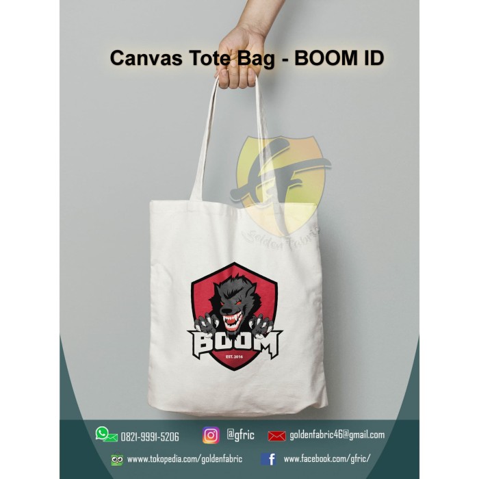 Jual Canvas Tote Bag- Team E-sport Indonesia #1 - BOOM ID - Jakarta Barat - Golden Fabric | Tokopedia