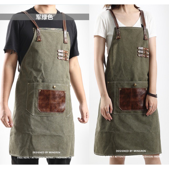 Genuine Leather Apron Canvas Kitchen Apron Fashion Unisex Work Apron | Shopee Singapore