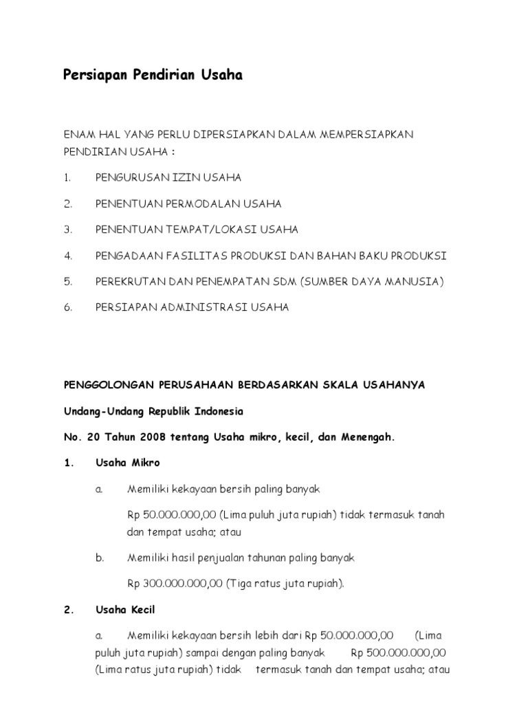 Persiapan Pendirian Usaha