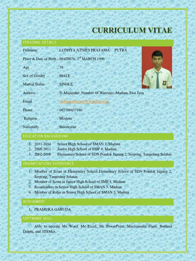 contoh Curriculum Vitae (untuk siswa sma)