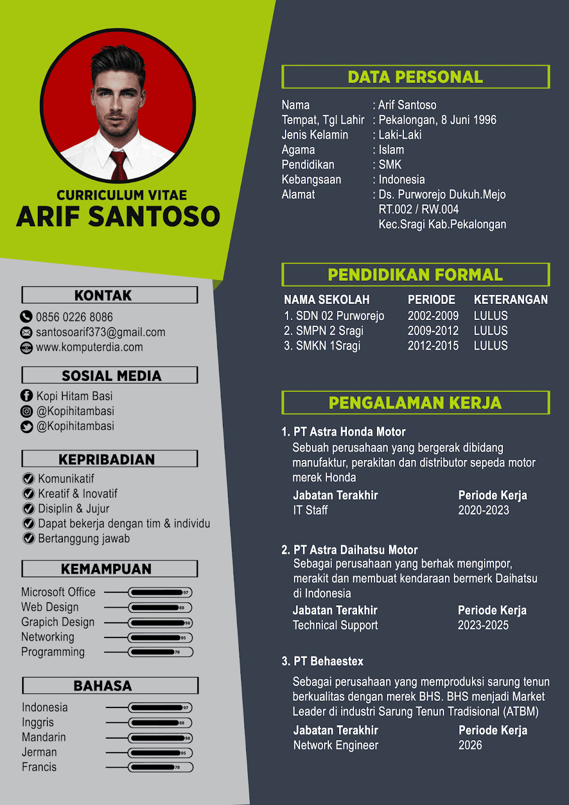 Contoh Daftar Riwayat Hidup Yang Menarik | Creative cv template, Cv kreatif, Riwayat hidup