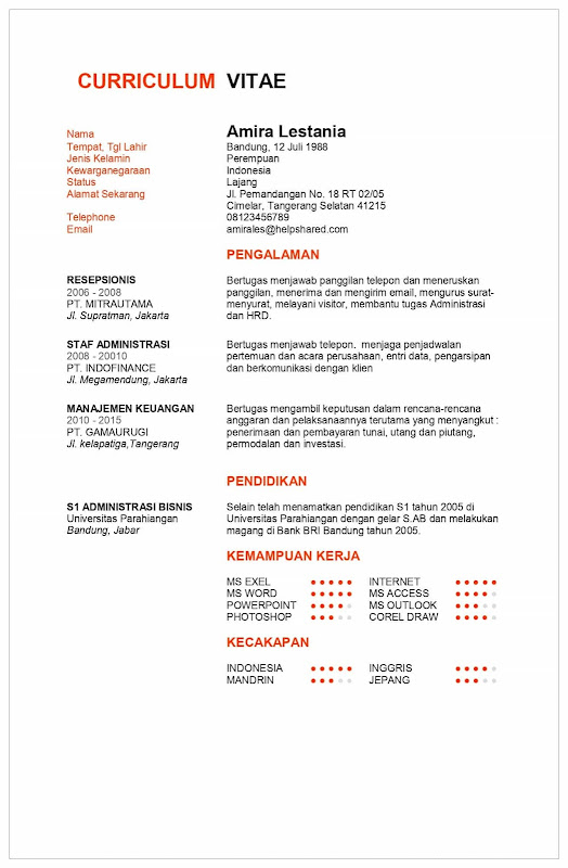 Contoh Cv Menarik Dan Kreatif Bahasa Indonesia - BEST RESUME EXAMPLES
