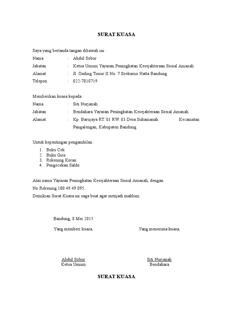 Contoh Surat Kuasa Pengambilan Uang Di Bank 2019 - Contoh Surat