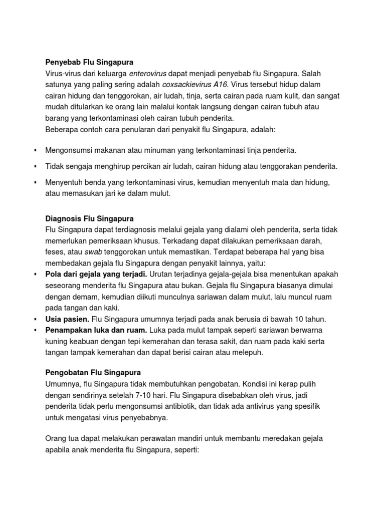 Flu Singapura Penyebab, Gejala, Diagnosis dan Pengobatan