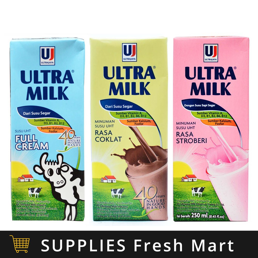 Susu Ultra Milk UHT Rasa Coklat / Full Cream / Plain Low Fat High Calcium - 1L 1000ml (1 Dus = 12) | Shopee Indonesia