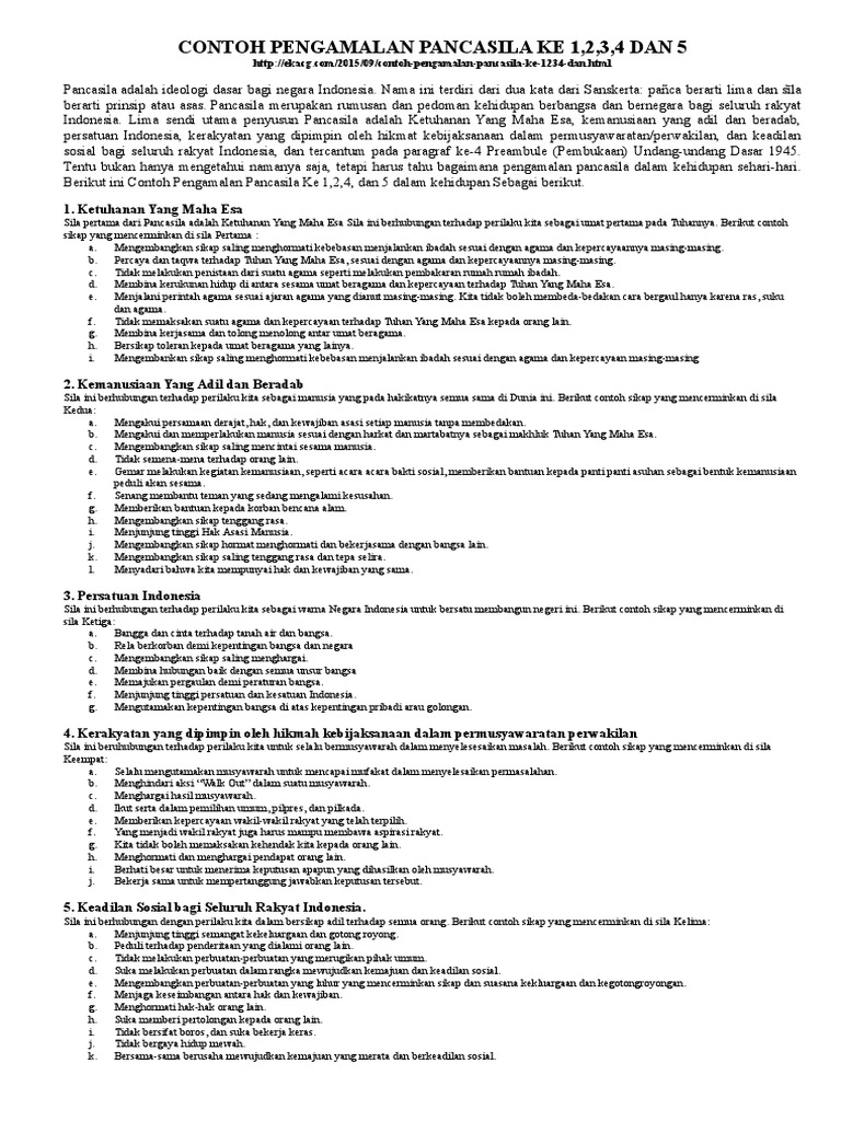 Pengamalan Sila ke 1, 2, 3, 4, 5 Beserta Contohnya.