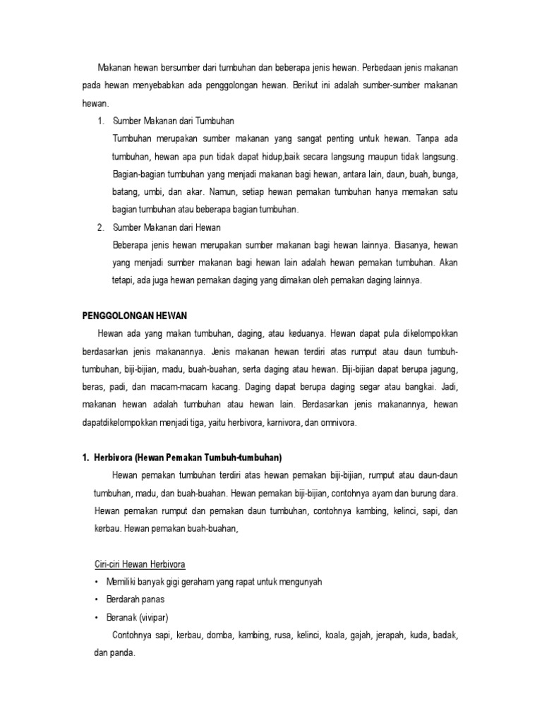 JENIS-JENIS HEWAN BERDASARKAN JENIS MAKANANNYA ~ Indri Septianing Putri