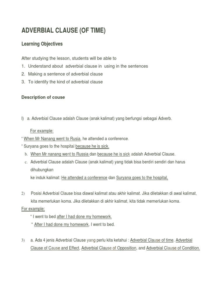 JENIS ADVERBIAL CLAUSE - Kampung Inggris Pare