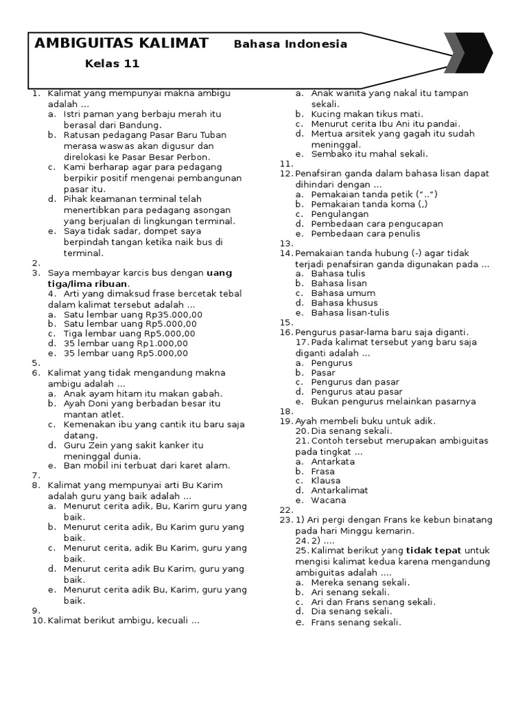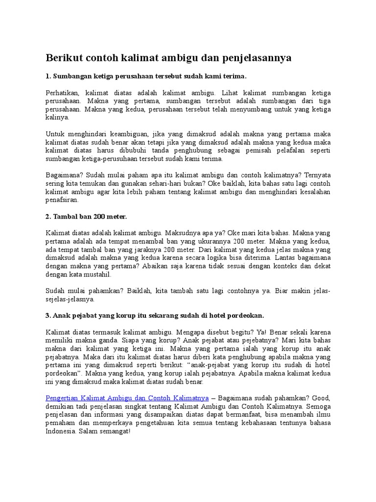 Contoh Kalimat Ambigu | idschool
