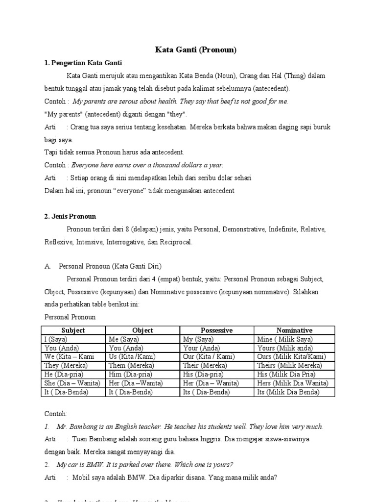 DOC) PERSONAL PRONOUN | Wawan Poha - Academia.edu