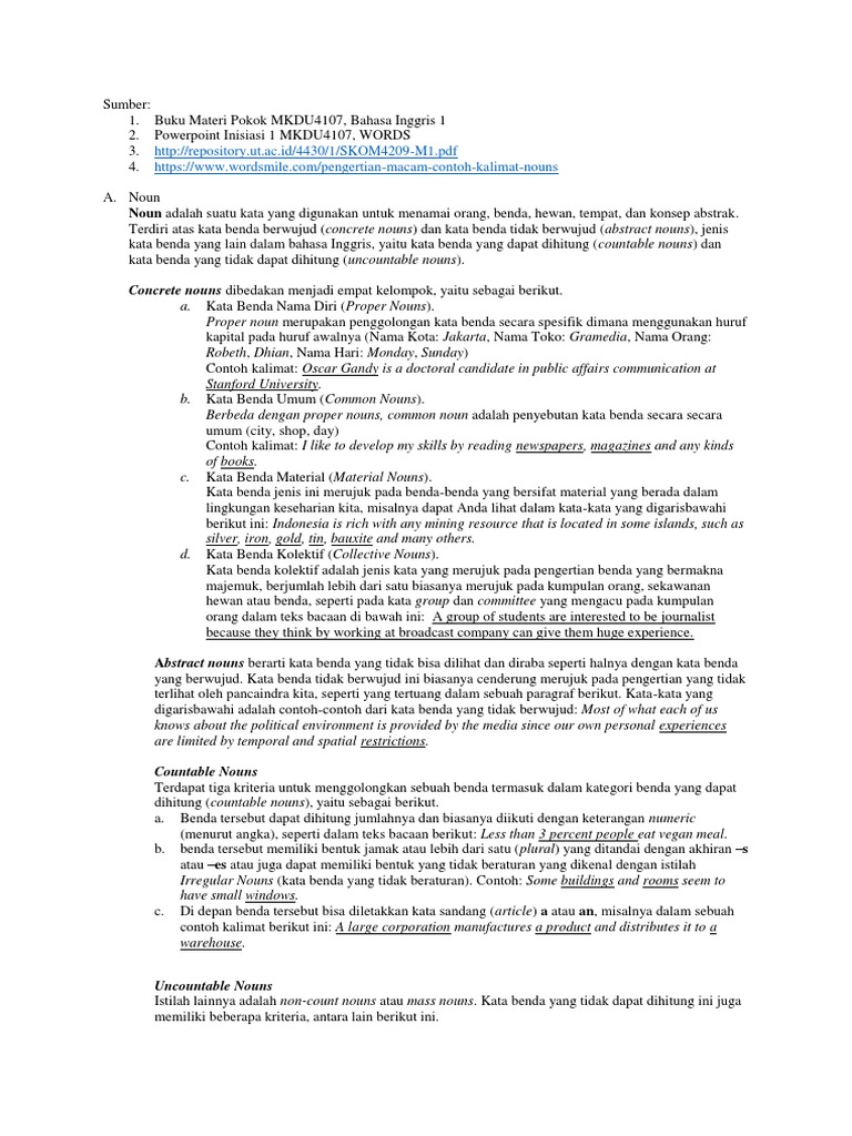 DOC) Pengertian, Macam dan Contoh Kalimat Noun (Kata Benda Bahasa Inggris | isma yadi - Academia.edu