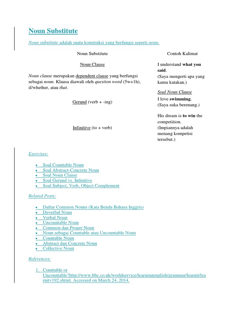 Noun Substitute: Noun substitute adalah suatu konstruksi yang berfungsi seperti noun