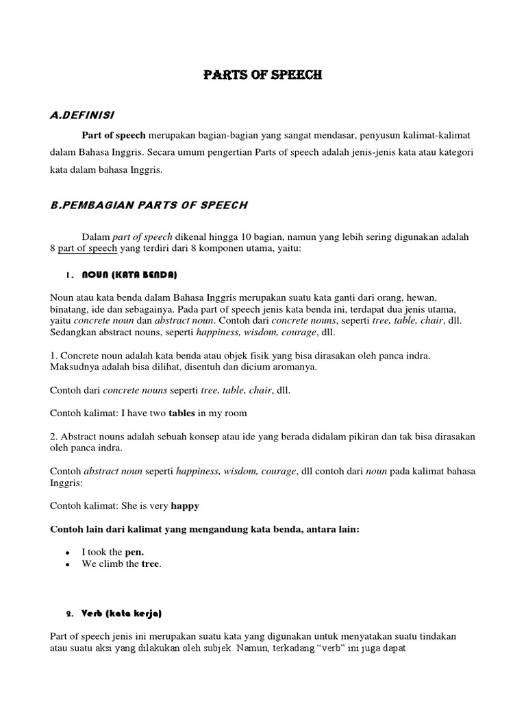 DOC) Pengertian Part of Speech | budidaya perairan - Academia.edu