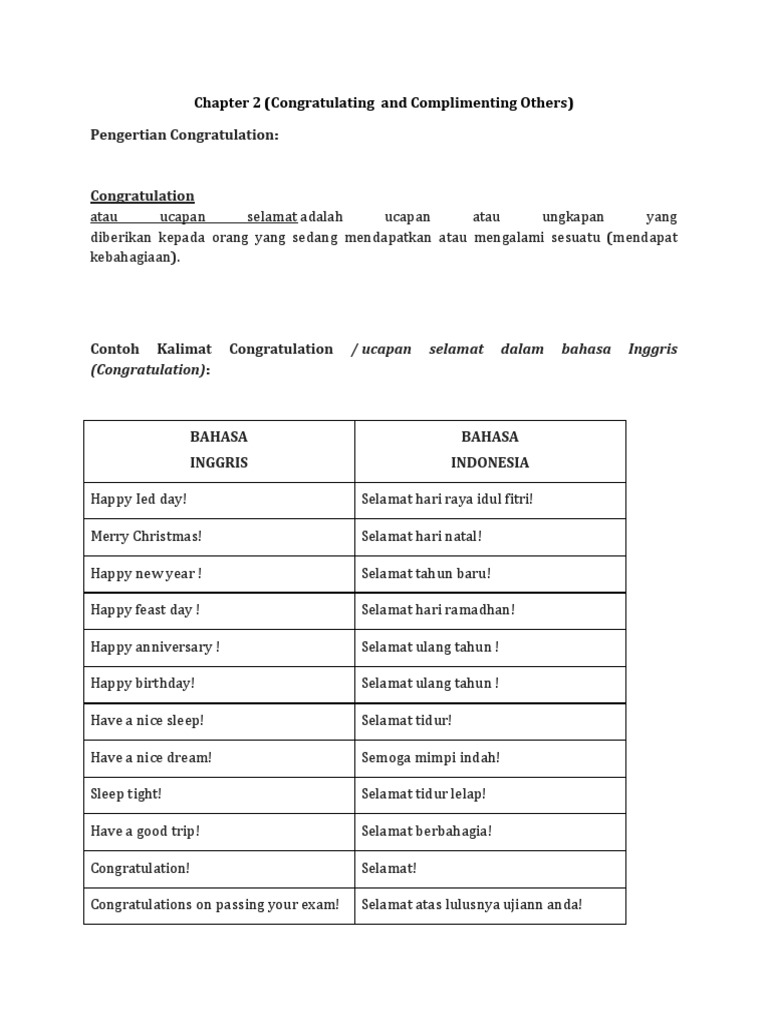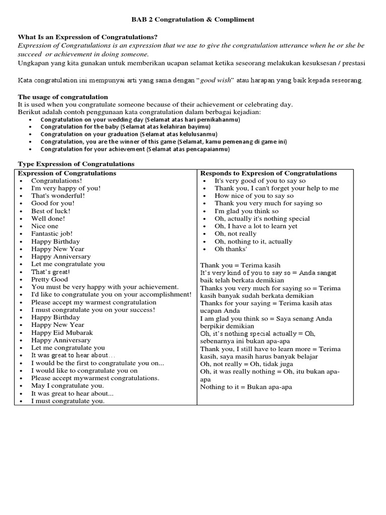 DOC) Percakapan Bahasa Inggris: Compliment and congratulation Dalam interaksi sosial | Dwi Cahyo - Academia.edu