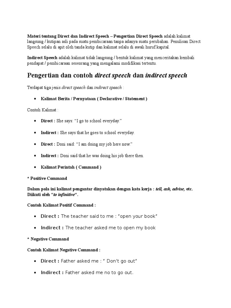 Pengertian Direct dan Indirect Speech, Perbedaan, Penggunaan dan Contoh Direct dan Indirect Speech – Laman 3 – Forum Teropong