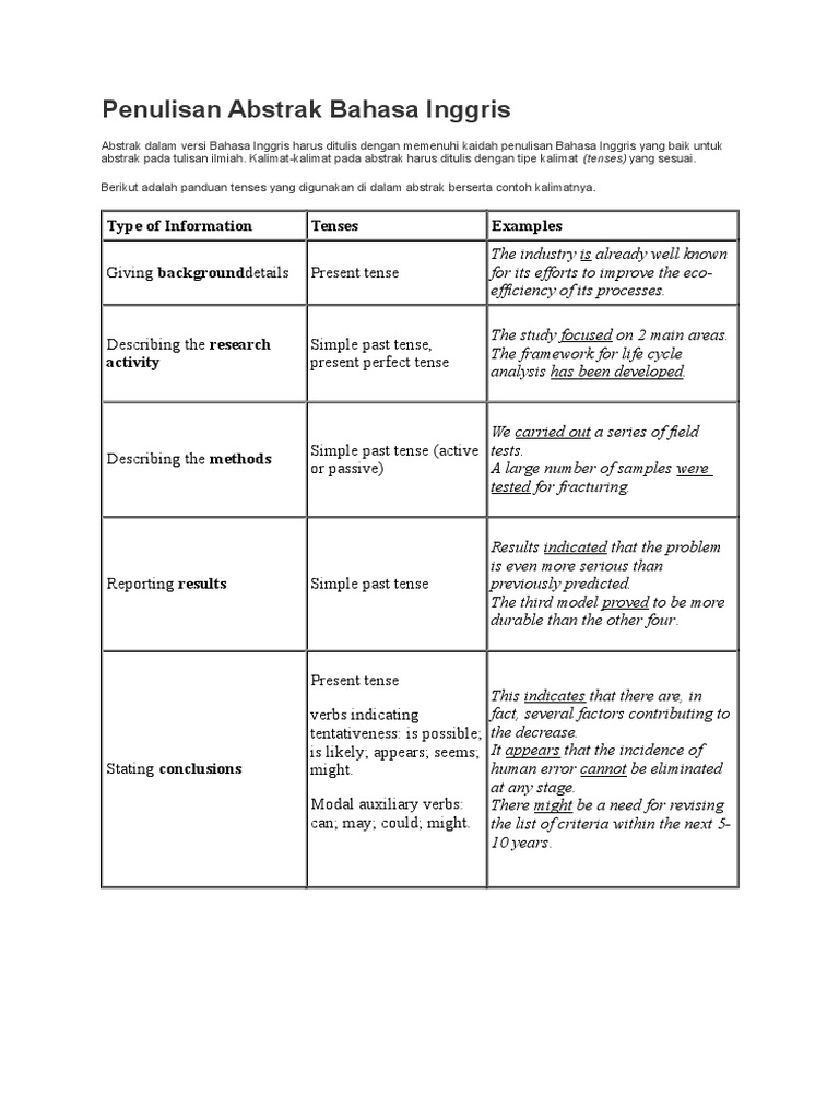 Penulisan Abstrak Bahasa Inggris: Type of Information Tenses Examples | Grammatical Tense | Perfect (Grammar)