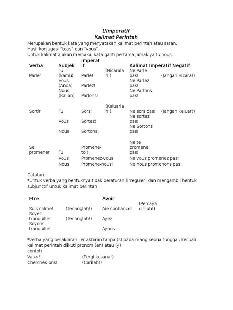 L’Imperatif (kata perintah)