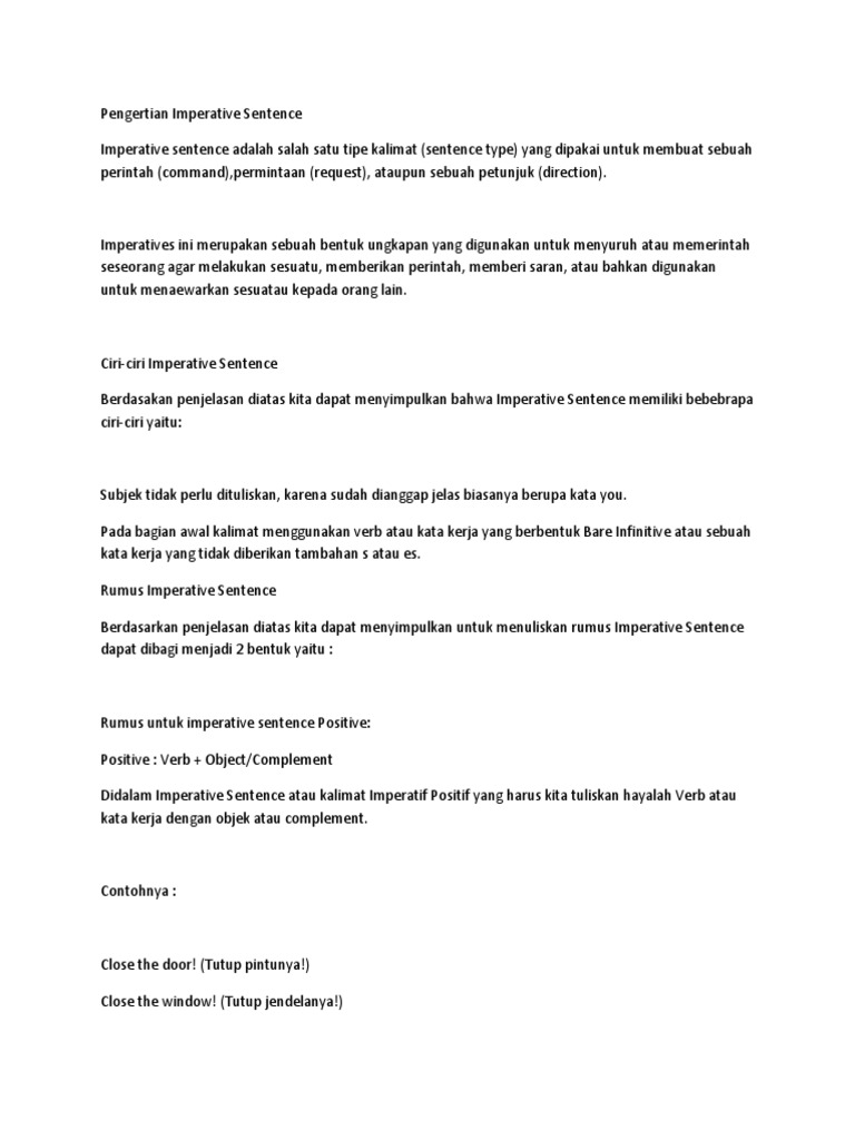 Pengertian Imperative Sentence
