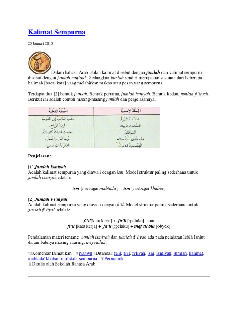 Contoh Kalimat Ismiyah Dan Fi'Liyah Dalam Bahasa Arab
