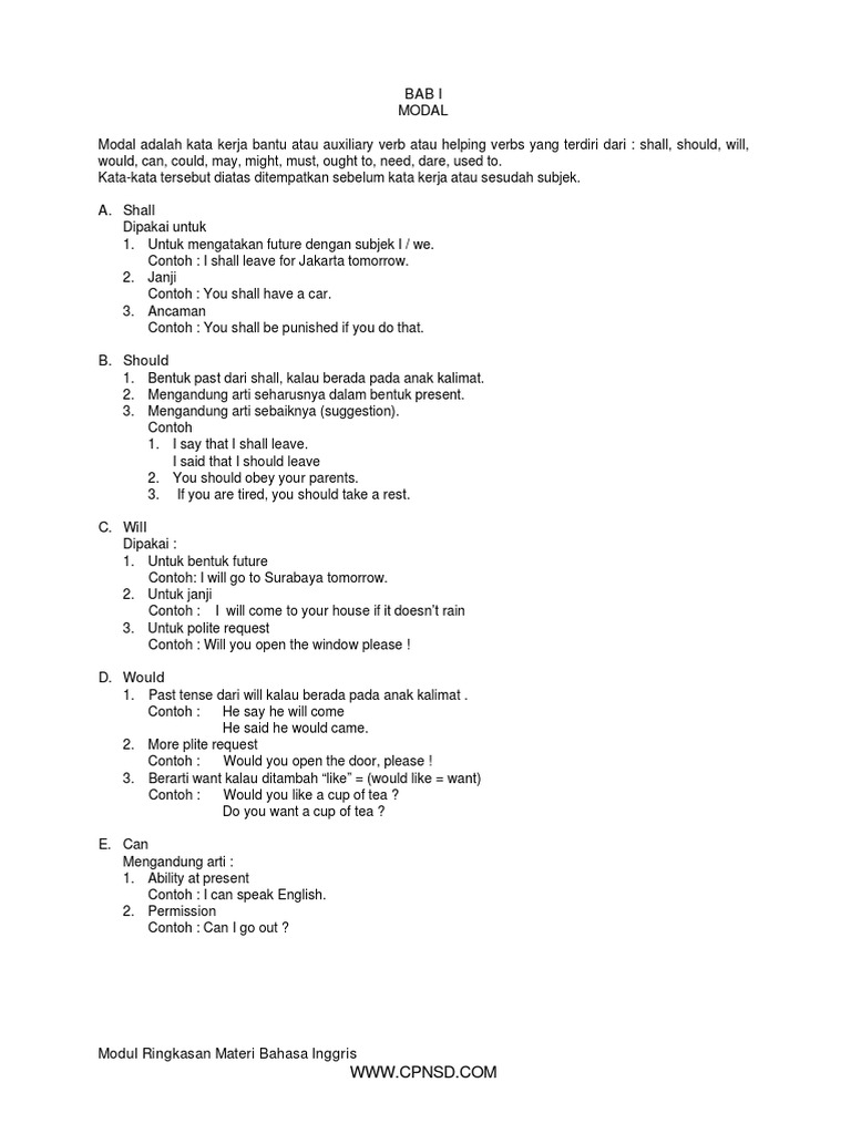Pengertian, Fungsi, Contoh Modals Dalam Bahasa Inggris Lengkap
