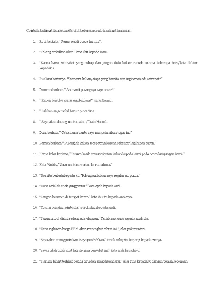 DOC) Pengertian dan Contoh Kalimat Langsung dan Tidak L | Mamaz Gie - Academia.edu