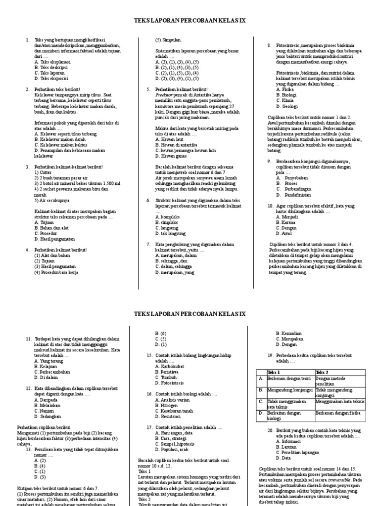 Soal Bahasa Indonesia Kelas 12 SMA/MA/SMK, 2020 PG/Essay